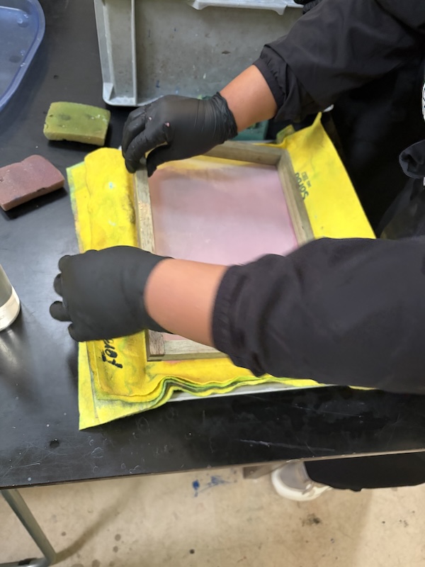 Aggademie Transvaal jong talent van Praktijkschool de Einder skills deze week druk technieken en ambachten; zeef belichten, zeefdrukken, papier scheppen en spetterpainting maken. Aggademie Transvaal is een cultuureducatie project op initiatief van Topaze en Praktijkschool de Einder en wordt ondersteund door het Fonds voor Cultuurparticipatie en Fonds 1818