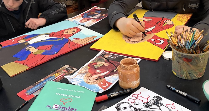 Expositie 'Powervrouwen' in theater de Vaillant in het kader van vrouwendag verbeelden jongeren en wijkkunstenaars hun 'powervrouw'. Het werk is te bewonderen t/m 02-04-2026 in theater de Vaillant.