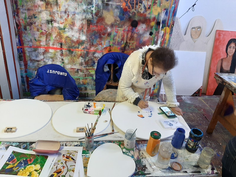 Je werk expositie klaar maken, een lijst timmeren, lino drukken, schilderen het kan allemaal in de werkplaats van Topaze, iedereen doet mee.
