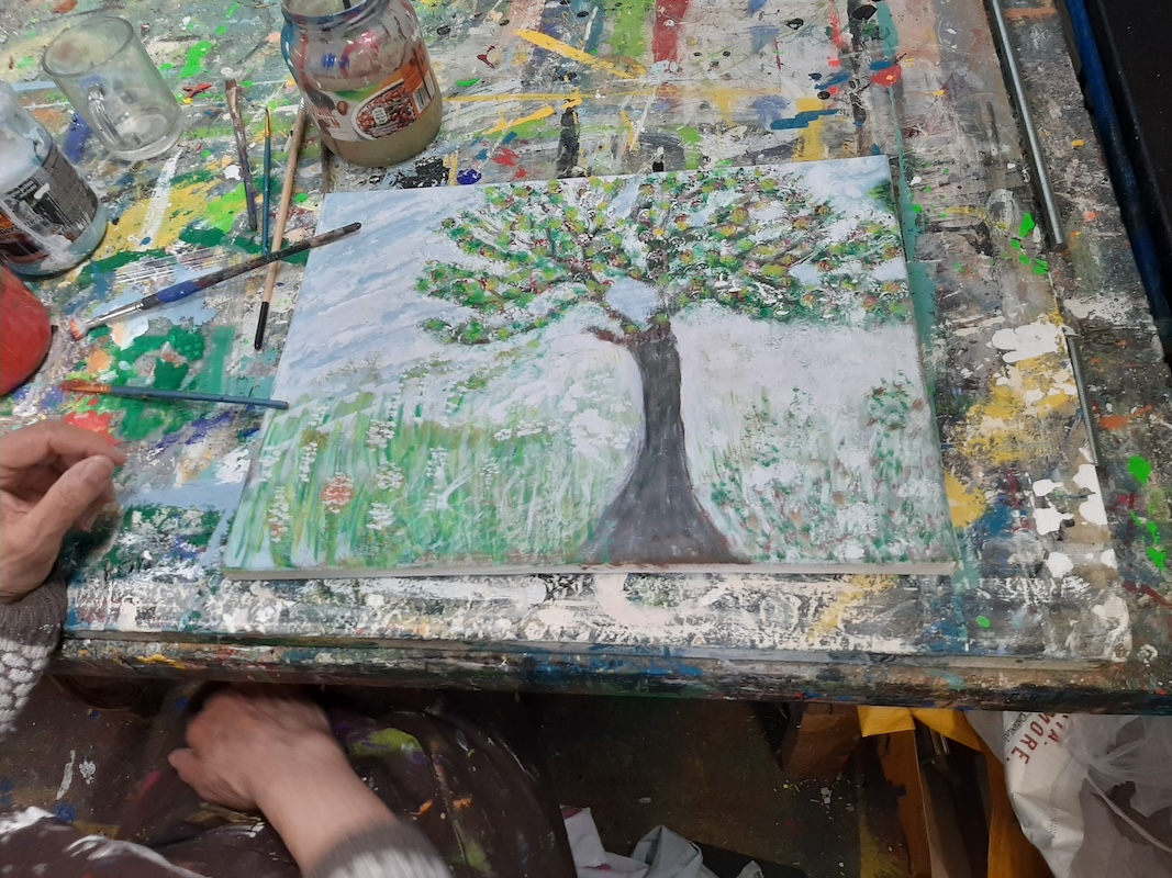 Schilderen, schilderen en schilderen, wijk kunstenaars aan de slag in het kunstencentrum Transvaal de werkplaats van Topaze