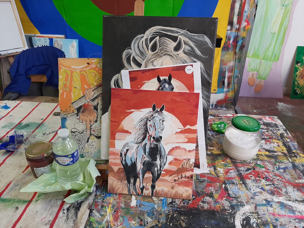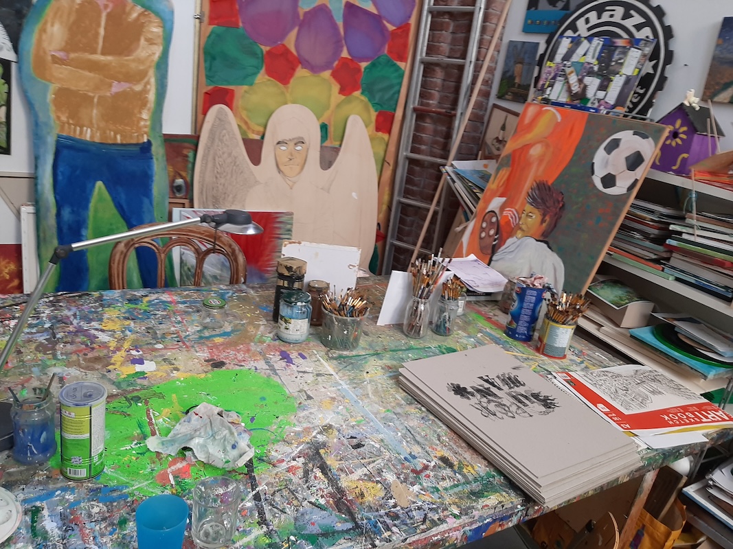 Een kijkje in de werkplaats van Topaze..zonder mensen en ..veel leuker met mensen ! Deze wijkkunstenaars gaan op maandag dinsdag donderdag en vrijdag ochtend aan de slag in de werkplaats.