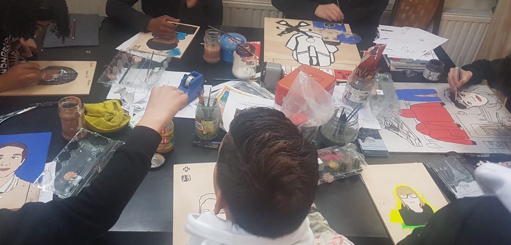 Jonge talenten komen naar de werkplaats in het kader van het cultuureducatie project Super Scorro Transvaal voor een kunststage. Super Scorro Transvaal is een samenwerking met de Einder Pro en het fonds voor cultuurparticipatie.